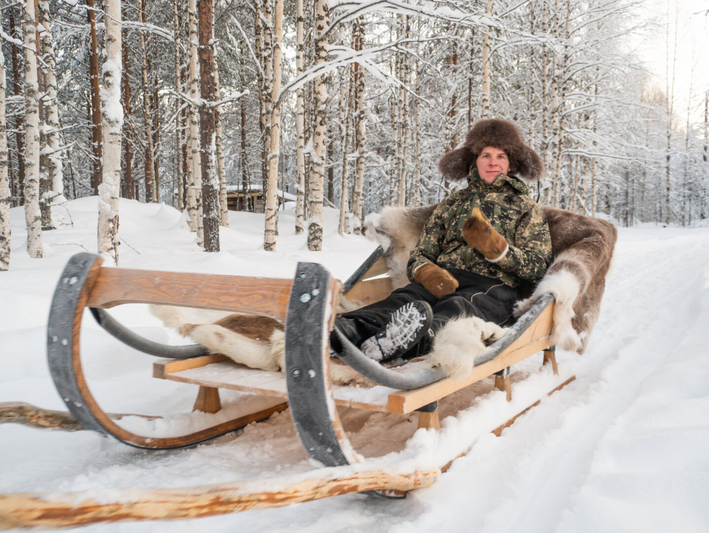 Fur hat protects your head much better than a beanie. This customer of Hotel Kalevala is well prepared!