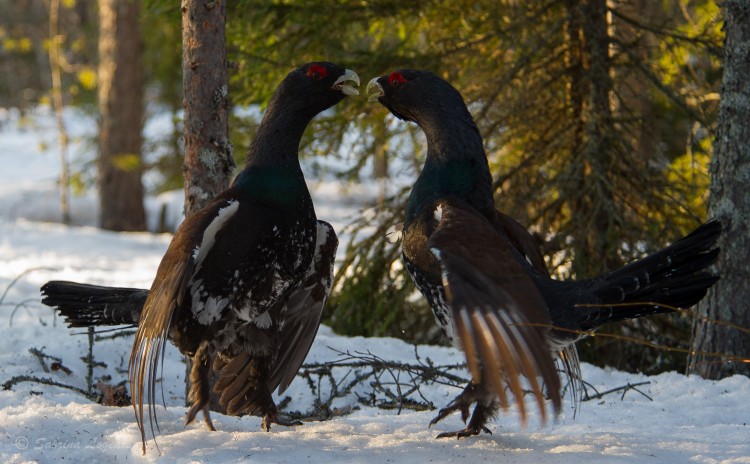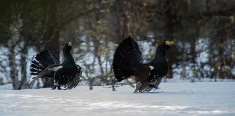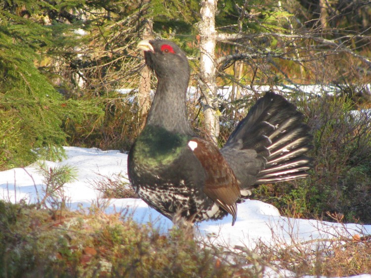 Snow covers the forests of Kuhmo usually until 10th of May. The best season to see and photography the lekking Capercaillie and Black Grouse is between end of april to middle of may. We have several hides or tents to watch and photograph in the forest for Capercaillie and an swamp area for Black grouse