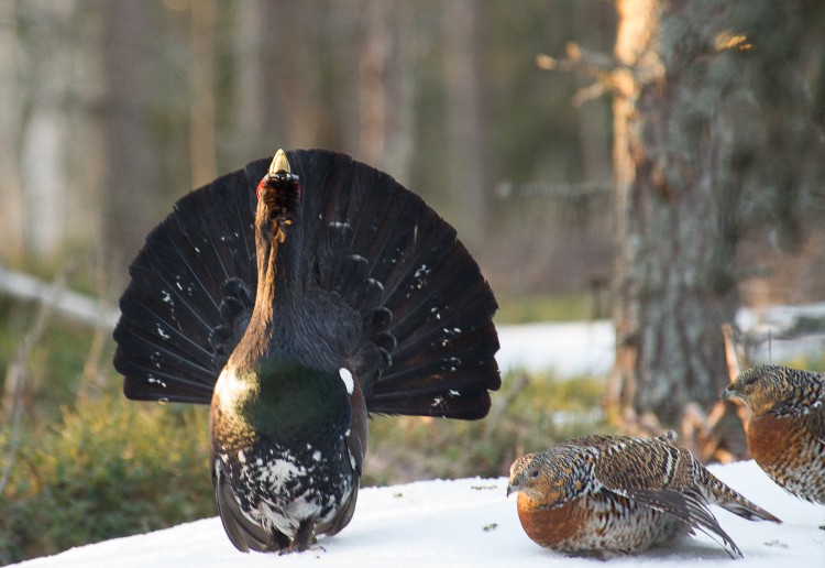 Snow covers the forests of Kuhmo sometime until 10th of May. The best season to see and photography the lekking Capercaillie and Black Grouse is between mid of april to middle of may. At this time, bears start to be also around and wolverines are also enjoy the spring light and fun.