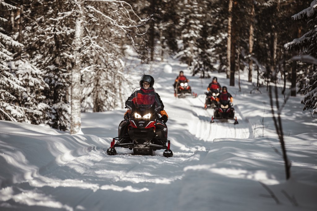 TOUR 1: SNOWMOBILE SAFARI : Route is about 20-25km for a variable winter trails. In the middle of the tour we stop by to take hot beverage and small snacks. Snowmobile tour fits really good for the first timers.