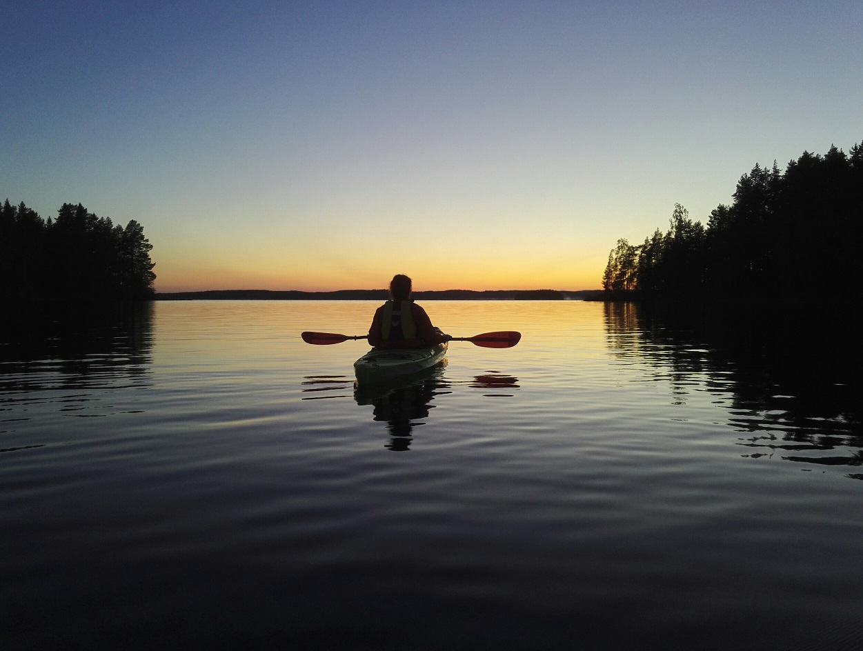 Kainuu's safe and healing nature surrounds us on this kayaking trip on Lake Lentua. Lentua is a beautiful Nature reserve, rugged, wild, and quiet lake in Eastern Finland near the Russian border. There is a lot of beautiful islands with big old forests. That's why it fits perfectly for using the Forest Mind - methods on this trip. Forest Mind is a program of mental skills exercises designed to utilize and intensify the natural healing effects of forests.