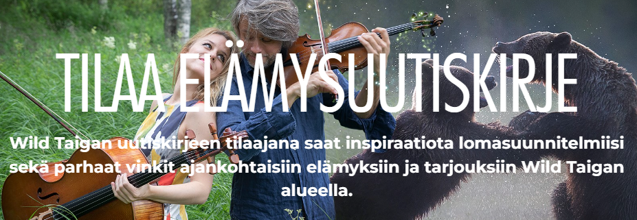 Wild Taiga yhdistää yli 50 matkailutoimijaa Kuhmossa, Suomussalmella ja lähialueilla. Tarjoamme harvinaisen mahdollisuuden nähdä ja kuvata karhun, suden ja ahman sekä muita eläimiä niiden luonnollisessa elinympäristössä. Luontoelämysten ja aktiviteettien lisäksi voit nauttia alueen värikkäästä kulttuuritarjonnasta.