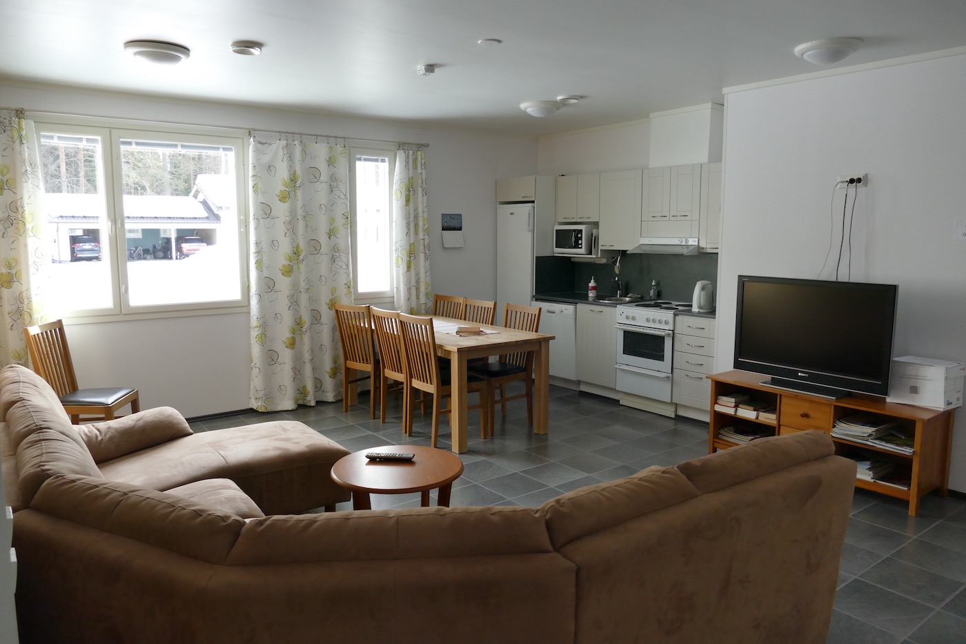 Tilat ovat modernit ja toimivat. Voitte valita haluatteko itse huolehtia ruokailuista vai ostaa ne valmiina Eräkeskukselta.